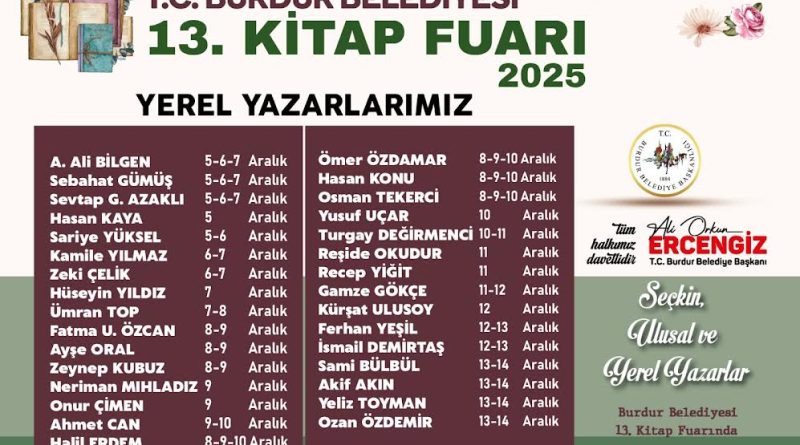 Burdur Belediyesi tarafından düzenlenen 13. Kitap Fuarı 5 Aralık’ta Burdur Belediyesi Konferans ve Sergi Salonunda açılıyor.
